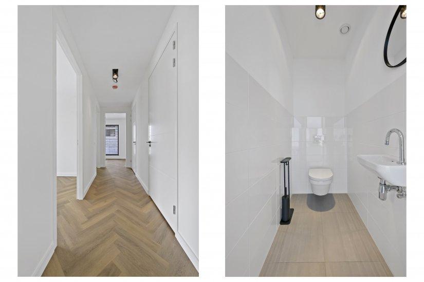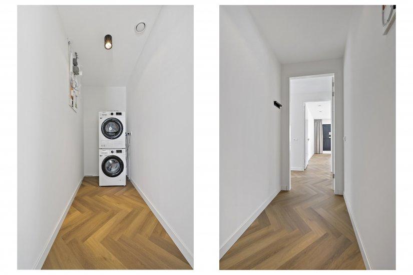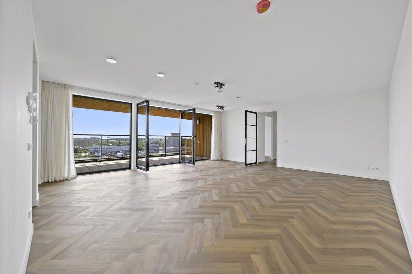 Binnenkomst in de hal die de entree biedt tot de woonkamer en het aparte toilet . De woonkamer is erg ruim met open keuken. Door de gehele raamwand is de woning ontzettend licht en heb je een adembenemend uitzicht. De keuken is voorzien van een afzuigkap, inductiekookplaat, vaatwasser, combi- ovenmagnetron, inbouw koelkast en vriezer. Daarnaast heeft de keuken veel opbergmogelijkheden door de ruime kastjes en lades. De woonkamer biedt ook de entree tot de prachtige loggia, hier kun je heerlijk windstil buiten zitten. De woning beschikt over 3 ruime slaapkamers aan dezelfde zijde naast elkaar. Naast het slaapkamer is een aparte ruimte voor het washok. De badkamer is voorzien van een inloopdouche, een ligbad, handdoekradiator en een dubbele wastafel.