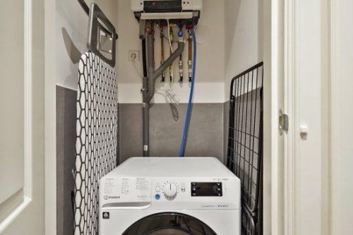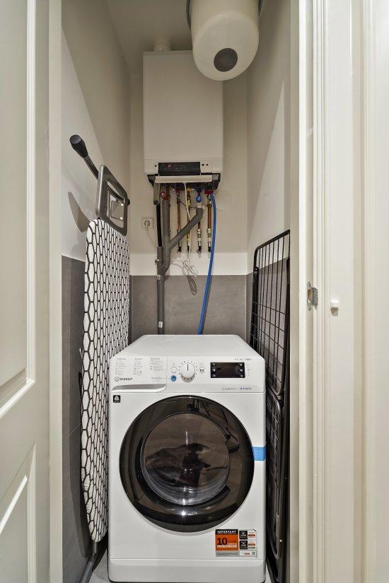 Apart toilet en een aparte ruimte met een was-droogcombinatie.