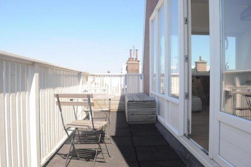 Gezamenlijke voordeur, brede trappen naar 3e etage. Voordeur in het appartement. Hall met toegang tot alle vertrekken. Zeer lichte woonkamer met toegang tot heerlijk ruim en zonnig balkon/terras (12m2).