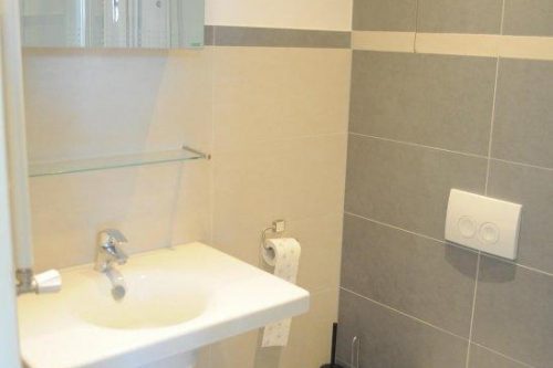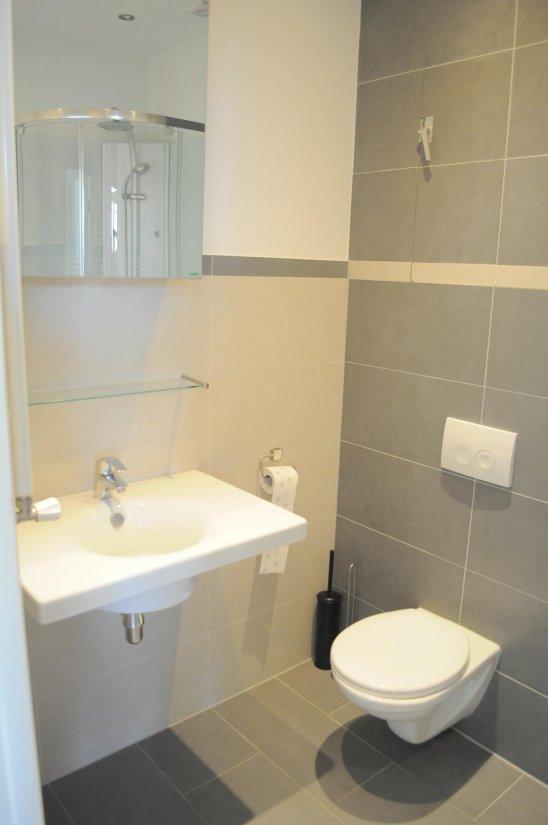 Algemeen entree; trap naar de tweede verdieping; entree appartement; ruime woonkamer met open keuken; keuken is voorzien van gasfornuis, afzuigkap, koelkast. 1 slaapkamer aan de achterzijde van de woning; ruime badkamer voorzien van toilet, douche en wastafel. Twee balkons beschikbaar, voor- en achterzijde