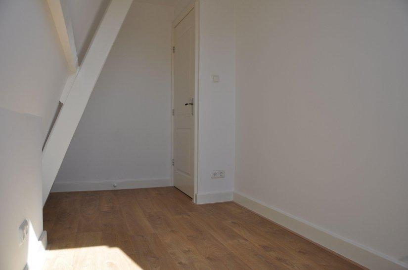 Entree, trap naar de tweede verdieping; entree appartement trap naar de derde verdieping; ruime woonkamer met open keuken; keuken is voorzien van gasfornuis, combimagnetron, afzuigkap en koelkast; twee ruime slaapkamers aan de voorzijde van de woning gelegen; badkamer tussen de woonkamer en de slaapkamers en is voorzien van douche, handdoekradiator, toilet en wastafel. Balkon bereikbaar via de woonkamer.
