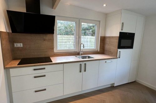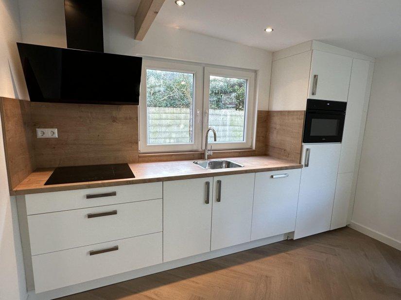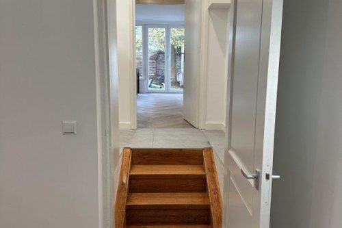 De woning bevindt zich aan de achterzijde van het pand met eigen entree. Binnenkomst in de hal die toegang geeft tot de lichte woonkamer met open keuken. De keuken is voorzien van inbouwapparatuur zoals koelkast, vriesvak, combi oven-magnetron, elektrische kookplaat en vaatwasser. Vanuit de woonkamer is toegang tot het terras met zeer ruime tuin. De moderne badkamer beschikt over een inloopdouche, wastafelmeubel, wasmachine en zwevend toilet. Vanuit de gang toegang tot de ruime slaapkamer.